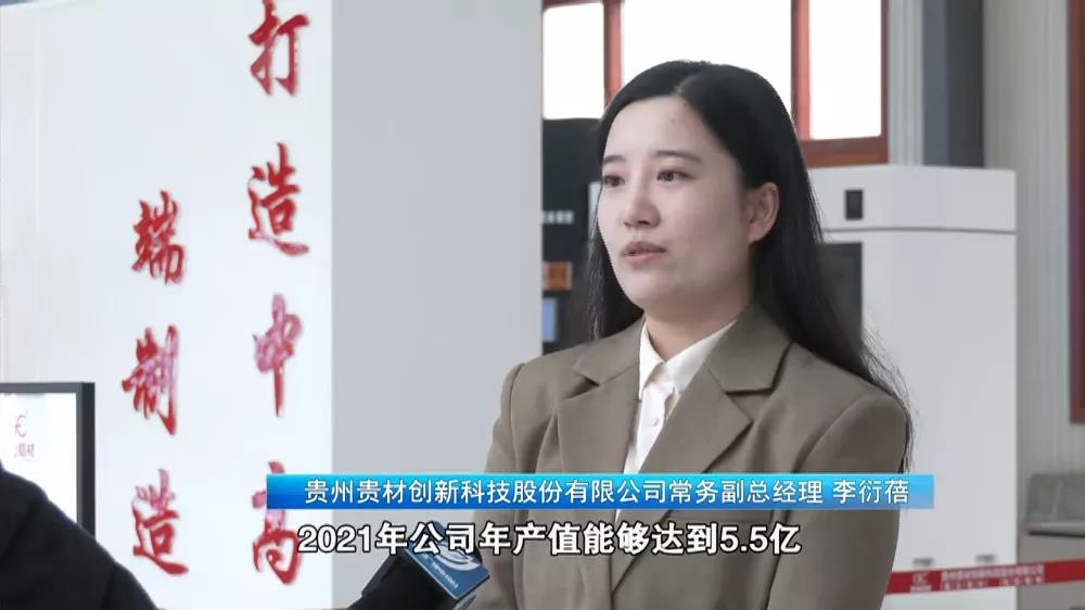 貴州貴材創新科技股份有限公司常務副總經理 李衍蓓:2021年公司產值能夠達到5.5億,比去年同比增長36%,車間生產線全年保持90%以上的生產效率。