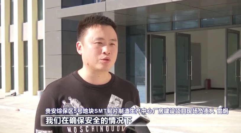 貴安綜保區5號地塊SMT貼片制造生產中心廠房建設現場負責人 雷炯:為保證企業如期入駐,我們在確保安全的情況下保證施工質量。目前,我們的計劃是1月份能夠驗收完成,達到企業的入駐使用條件。