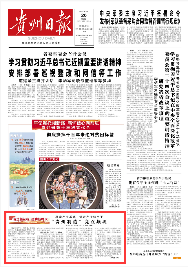 貴州省以數(shù)字化、網(wǎng)絡(luò)化、智能化為方向,強化企業(yè)創(chuàng)新主體地位,再造產(chǎn)業(yè)基礎(chǔ),全面提升產(chǎn)業(yè)鏈水平,推進傳統(tǒng)產(chǎn)業(yè)提質(zhì)升級,“貴州制造”亮點頻現(xiàn)——