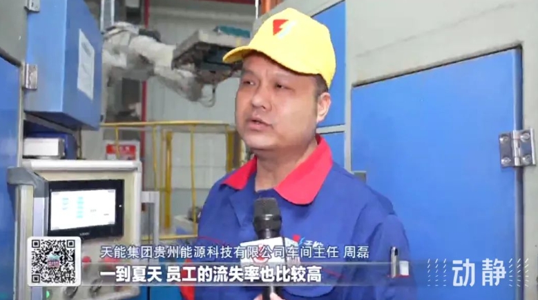 天能集團(tuán)貴州能源科技有限公司車(chē)間主任周磊介紹,以前純手工,爐溫的溫度最高溫是510℃,神經(jīng)高度緊張,一到夏天,員工的流失率比較高。