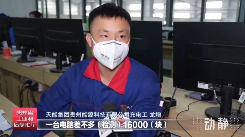 天能集團(tuán)貴州能源科技有限公司充電工龍?jiān)鼋榻B,手操控電腦過(guò)后,能夠監(jiān)測(cè)到每一塊電池,一臺(tái)電腦差不多檢測(cè)16000塊。